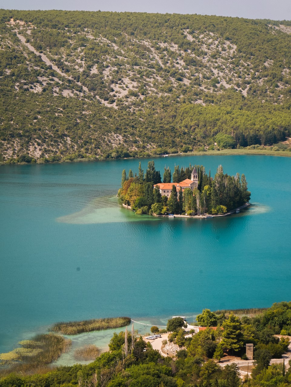 Prochain arrêt Visovac, petit îlot avec un monastère au milieu de la rivière. Sublime. Il y a la possibilité d'y aller en bateau mais nous ne l'avons pas fait. C'est une excursion de 30 minutes qui permet de faire le tour de l'îlot et de visiter le monastère.