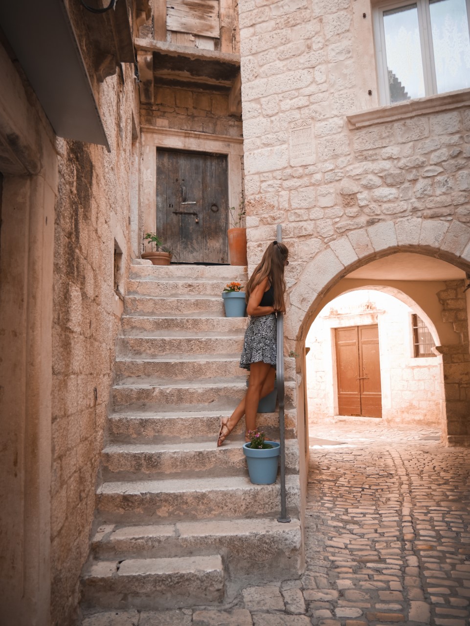 Nous débarquons sur l'île de Hvar samedi vers 18h, c'est tellement mignon l'eau est turquoise, la ville est blanche avec des petites fleurs colorées, c'est une vraie carte postale. Hvar c'est le saint Tropez Croate, il y a du beau monde, des soirées, et des restaurants assez chics.